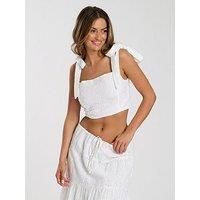 Experience the ultimate fusion of comfort, style, and effortless elegance, crafted for those who savour the warmth of summer without compromising on stylish simplicity.From beach days to rooftop gatherings, or a casual stroll through the city, this piece ensures you stay cool and stylish no matter the occasion.Designed to layer, mix, and match, this summer essential is the perfect companion for your seasonal wardrobe, offering a seamless transition from sunny afternoons to evening events all while keeping you cool and effortlessly on-trend. | South Beach Broderie Tie Shoulder Top In White - Manufacturers part number: W9UTE