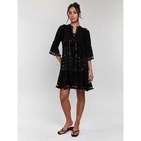 South Beach Trim Detail Tiered Mini Dress Size & Fit True to size - order your usual size Relaxed fit Mini length Available in sizes 8 - 18 Model wears size 8 and is 5' 8" · 173cm Details Trim Detail Tiered Mini Dress by South Beach Black Crafted from soft cotton 3/4 length sleeves Notched neckline Delicate trim detailing Flattering tiered design Material & Care Material Content: 100% COTTON Washing Instructions: Machine Washable