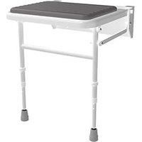 Height-adjustable, wall-mounted padded shower seat with legs. Features non-corrosive aluminium and stainless steel frame with durable, clip-on moulded plastic seat. Max. Load: 190kg Visible Fixings Model No: 130204/GY E-Clip for 25mm Increments Foot Thread for Fine Adjustment Max. Load: 190kg Visible Fixings Model No: 130204/GY E-Clip for 25mm Increments Foot Thread for Fine Adjustment - Manufacturers part number: 130204GY