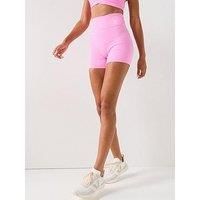 Gym King Womens 365 Scrunch Short Size & Fit True to size - order your usual size Compression fit Available in sizes 6 - 18 Details Womens 365 Scrunch Short by Gym King Pink Shorts High rise Deep waistband Printed branding on front Pull on fastening V scrunch on the back Sweat wicking Squat proof Material & Care Material Content: 75% NYLON, 25% ELASTANE
