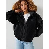 Gym King Womens Borg Woven Jacket Size & Fit True to size - order your usual size Oversized fit Regular length Available in sizes 6 - 18 Details Womens Borg Woven Jacket by Gym King Black Soft borg fabric with woven panels on sleeves and hood Hood with adjustable toggles for extra warmth Full zip fastening with branded puller Two side pockets for essentials Elasticated cuffs for a snug fit Contrast GKW branding on chest Material & Care Material Content: 100% POLYESTER