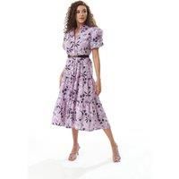 Floral print, Button up front, Balloon sleeves, Collar, Black belt, Regular fit