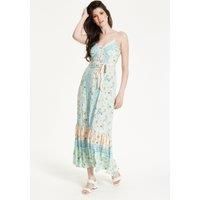 Soft, floaty, and effortlessly stylishthis Mint Boho Floral Tie Front Maxi Dress is your new sunshine favourite. Featuring a flattering V-neckline, adjustable shoulder straps, and a tiered hem, its finished with a charming tie front and pastel floral print. Perfect for holidays, festivals, or slow summer strolls.This dress captures the essence of boho summer style. The mint base and ditsy floral pattern feel fresh and feminine, while the tie-front bodice and flowing skirt add a relaxed, carefree vibe. W...