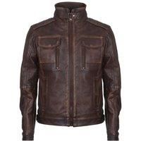 A stunning jacket with a distinctive, distressed appearance which is crafted from butter soft Nappa leather. It features a chunky YKK zip fastening and a high stand collar which can be held shut with a press stud buckle. On the chest are two flap, patch pockets adjacent to a pair of vertical zip pockets while two hand warmer pockets at the waist have press stud closures. This jacket is a perfect blend of the rugged and iconic biker look and is this seasons must have item in your wardrobe. Available in o...