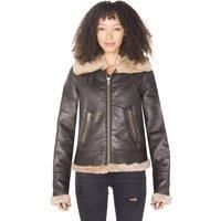 A chic take on the popular B3, which was initially designed as a jacket for aircraft bombers who needed to stay functional at high altitudes. The result is a double-faced sheepskin jacket which is unparalleled in its ability to provide warmth and comfort due to the thick inner lining. This piece is true to all these qualities and introduces a stylish double buckle feature at the collar, which allows it to be stood up and fastened for extra protection against the cold. The metal hardware, which features at the pockets, buckles and fastening, appears in a classy golden colour which provides a beautiful contrast against the brown jacket body and gives this piece an eye-catching appeal. Crafted from high-quality double-faced sheepskin, Thick sheepskin lining is renowned for providing warmth and comfort, Includes two zipped waist pockets, Features a YKK zip closing, and buckle fastened collar | Infinity Leather Women's B3 Sheepskin Leather Flying Jacket-Portland in Brown | Size: 22 - Manufacturers part number: Infinity Leather_5056772546951