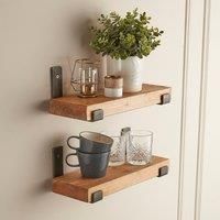 This pack of two rustic wooden shelves is handmade in Yorkshire from sustainably sourced solid wood, measuring 15cm in depth and 5cm in thickness for a sturdy, substantial feel. Each shelf is finished with a premium wood wax, enhancing its natural charm and durability. Perfect for use throughout the homefrom kitchens to officesthese shelves provide both style and functionality, offering an ideal space to display decor, organise essentials, or add a rustic touch to any room. | Off the Grain 2 Pack Rustic...