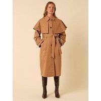 Nobodys Child Bramiola Cape Trench Coat Size & Fit True to size - order your usual size Regular fit Knee length Available in sizes XS - XL Details Bramiola Cape Trench Coat by Nobodys Child Brown Regular collar Button through fastening Front pockets Tie belt fastening Cape detail Long sleeves