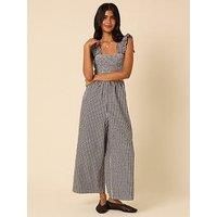 Nobodys Child Maya Jumpsuit Size & Fit True to size - order your usual size Available in sizes 6 - 14 Details Maya Jumpsuit by Nobodys Child Black Gingham print Square neck Sleeveless with wide frilled sleeves Shirred bodice Wide leg cut
