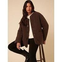 Nobodys Child Tawnie Reversible Cord Liner Coat - Brown Size & Fit True to size - order your usual size Regular fit Available in sizes 6 - 16 Details Tawnie Reversible Cord Liner Coat by Nobodys Child Brown Collarless neckline Button through fastening Front slip pockets Long sleeves One side quilted One side soft texture