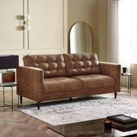 Our Jade 3 seater brown faux leather sofa ticks off all the design boxes! This gorgeously soft sofa will be a perfect addition to your living room furniture. The straight lines keep this design modern but the stylish brown faux leather fabric gives it a slight retro vibe that's bang on trend. The contemporary square button tufted stitching to the back cushions is a relaxed and softer nod to more traditional Chesterfield sofa styles. Sits on black wooden tapered legs that complement the faux leather nicely, making this a striking piece that will catch the eye without overwhelming your space. Constructed from a sturdy wood frame upholstered in soft-touch faux leather that's easy to keep clean, with lovely cushions that you can snuggle into, and resting on strong tapered wooden legs. This sofa is designed to last and look great while doing it! Available as a larger 3 seater, and in a range of other colours. We're also pleased to announce that our delivery drivers will not only attach the ... - Manufacturers part number: FurnitureboxUK_5056784310267