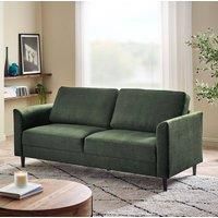 Our Logan 3 seat sofa is going to be the perfect spot to relax in your living room. An effortlessly simple yet bang-on-trend modern upholstered fabric sofa, the design is minimalist and boxy with straight lines, except for the arms which slope down into the seat. Featuring 2 large back cushions with removeable covers and stylish black wooden tapered legs to give it a chic look. The colour gives is some retro 70s vibes but it will look fab in any decor setting. Constructed from a sturdy wooden frame with foam filling and upholstered in stunning soft touch polyester fabric with a luxurious weave, the Logan is built to last and look great while doing it. Matching 2 seater and armchair also available, and offered a range of colours/fabrics, too. Furniturebox sofa firmness rating - 4/5 medium-firm - this sofa is quite firm, designed to not leave a bum-print. | FurnitureboxUK Logan Fabric 3 Seater Sofa in Green - Manufacturers part number: FurnitureboxUK_5056784313718