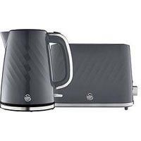 Swan Windsor Kitchen Set, 1.7L Fast Boil Kettle & 2 Slice Toaster, Grey, SK14611GRY & ST14071GRY