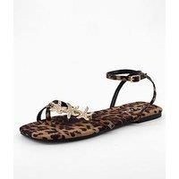Public Desire Lyrical Starfish Flat Sandal - Embellished Size & Fit True to size - order your usual size Standard fit Available in sizes 3 - 8 Details Lyrical Starfish Flat Sandal - Embellished by Public Desire Leopard print Square open toe Open back Flat heel Ankle strap with buckles Diamante starfish embellishment Material & Care Heel Height: No Heel Material Content: POLYESTER 100% Lining: Other Materials Sole: Other Materials Upper: Textile