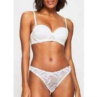 KBX Harper Thong The Harper thong in white by KBX offers a comfortable fit and a flattering silhouette. Blending elegant scalloped lace and microfiber material, the elasticated waistband features a lace band at the centre front that hugs the body. Complete with brushed gold-toned hardware and a narrow back that lays flat with the body for an invisible layer under your clothing. Made from microfiber and lace Material Content: Poly amide 85 %,Elastane 15 % Brushed champagne gold-toned hardware Elasticated...