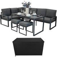 Get offerCreate the ultimate outdoor sanctuary with this stylish garden bundle, pairing a contemporary aluminium corner sofa set with a spacious black rattan storage box. The aluminium corner sofa set in an elegant anthracite grey finish is a standout centrepiece for any patio, garden, or conservatory. Designed with both aesthetics and functionality in mind, it provides a generous seating arrangement comprising a corner sofa, two multi-use stools, and a sophisticated tempered glass table. The robust yet lightweight powder-coated aluminium frame offers long-lasting durability and easy rearrangement. Comfort is paramount with this set, featuring thick, plush cushions that come with removable, zip-fastened covers for easy cleaning and maintenance. The versatile table, with its 67.5cm height and sleek tempered glass surface, is the perfect height for drinks, snacks, or decorative touches - ideal for both relaxed lounging and al fresco dining. The included rain cover further enhances practicality, p... - Manufacturers part numbers: 215701|Monstershop_5056806822945