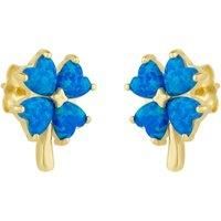 Experience the enchanting beauty of our Blue Opal Four Leaves Clover Sterling Silver Stud Earrings! These stunning earrings feature a delicate four-leaf clover design, crafted with sterling silver and adorned with shimmering blue opal stones. Perfect for adding a touch of elegance and luck to any outfit! | Spero London Women's Blue Opal Four Leaves Clover Sterling Silver Stud Earring in Gold