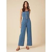 Nobodys Child Aster Jumpsuit Size & Fit True to size - order your usual size Available in sizes 6 - 16 Details Aster Jumpsuit by Nobodys Child Blue Sleeveless Wide straps Belt loops Square neck Side and back pockets Silver-tone NC button front Material & Care Material Content: 95% Cotton 5% Elastane