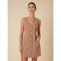 Nobodys Child Pinny Stripe Mini Dress Size & Fit True to size - order your usual size Regular fit Mini length Available in sizes 6 - 16 Details Pinny Stripe Mini Dress by Nobodys Child Beige Sleeveless Wide straps V neck Button front fastening Striped print Front patch pockets Material & Care Material Content: 100% Cotton