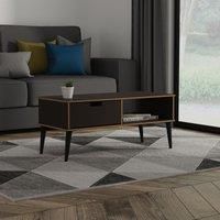 This modern coffee table, has a single storage drawer and open shelf stroage area. Bring creativity into your home with the eye-catching and stylish Shanghai range. Offering an expansive range of unique colours and combinations with contrasting edging and cut-out handles, Shanghai can make a statement piece in any space of your home. You can choose to express yourself with bold colours or blend the furniture with its surroundings through neutral finishes combined with black metal handles a black wood le...