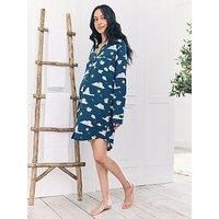 Chelsea Peers Maternity Night Shirt With Sleeping Bunny Print In Polyester Settle in for starlit snoozes with our Celestial Bunny Print maternity nightshirt - a dreamy blend of comfort and charm designed to grow with you. Hand-illustrated bunnies doze and daydream atop fluffy clouds, scattered with golden stars across a twilight sky. Made from soft, stretchy jersey, this nightshirt is perfect for pregnancy and beyond. A revere collar, contrast piping, and chest pocket offer classic pyjama styling, while...