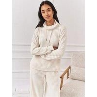 CHELSEA PEERS Ribbed Knit High Neck Sweatshirt Size & Fit True to size - order your usual size Relaxed fit Available in sizes 6 - 18 Details Ribbed Knit High Neck Sweatshirt by CHELSEA PEERS Off White Ribbed fabric Long sleeves High neckline with drawstring detail Gold tone hardware Soft loose hem