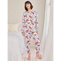 CHELSEA PEERS Chelsea Peers Chocolate Box Print Long Pyjama Set - Blue For the true chocoholics. This soft recycled jersey set is sprinkled with hand-drawn sweet treats, from heart-shaped boxes of truffles and chocolate bars to dipped pretzels, cherries and lollipops. It??s indulgent, without overdoing it. With a comfy crew neck, soft cuffs and a drawstring waist, it??s the perfect blend of cosy and cute. Midnight snack, optional. Material Content: 95% Polyester 5% Elastane Washing Instructions: Machine...