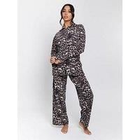 Relax in style with Loungeables Womens Loungewear collection. Crafted from soft, breathable fabrics, our loungewear pieces offer the perfect combination of comfort and style for those laid-back moments. From cosy joggers to snug tops, each piece is designed to provide a comfy fit while ensuring you look effortlessly chic. Whether youre winding down at home or enjoying a lazy weekend, Loungeables womens loungewear is your go-to choice for comfort and quality. | Loungeable Leopard Zip Top And Wide Leg Trouser Set