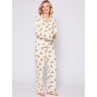 Unwind in ultimate comfort with Loungeables Womens Pyjamas collection. Made from soft, luxurious fabrics, our pyjamas are designed to keep you cosy all night long. Featuring a range of stylish designs and flattering fits, each set offers the perfect balance of comfort and elegance. Whether you prefer classic button-down styles or relaxed loungewear options, Loungeables womens pyjamas ensure a restful nights sleep and a chic look for your downtime. | Loungeable Teddy Bear Button Shirt And Long Pant Pyjamas Set In Cream