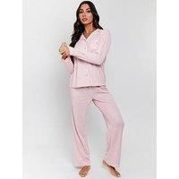Unwind in ultimate comfort with Loungeables Womens Pyjamas collection. Made from soft, luxurious fabrics, our pyjamas are designed to keep you cosy all night long. Featuring a range of stylish designs and flattering fits, each set offers the perfect balance of comfort and elegance. Whether you prefer classic button-down styles or relaxed loungewear options, Loungeables womens pyjamas ensure a restful nights sleep and a chic look for your downtime. | Loungeable Marl Brushed Knit Rib Traditional Pyjama Set In Pink - Manufacturers part number: WKJKX