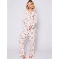Loungeable Cherry Martini Long Sleeved Button Down Traditional Pyjama Set Size & Fit True to size - order your usual size Relaxed fit Available in sizes S - XL Details Cherry Martini Long Sleeved Button Down Traditional Pyjama Set by Loungeable White Bow and cherry design Long sleeves Revere collar Button fastening Patch pocket on chest Elasticated waist with drawstring Material & Care Material Content: 95%poly 5%elastane Washing Instructions: Machine Washable