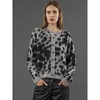 Religion Erin Button Through Animal Print Cardigan - Animal The Erin Cardigan is cut with a classic fit with a round neck, long sleeves, and a CF button fastening. Made from a brushed wool blend in an animal leopard jacquard pattern in grey and black tones, it features a regular fit and a hip-length cut. Pair it with the matching jumper for a coordinated twin-set look, making this versatile cardigan perfect for everyday wear. The model wears a UK size 10. Length from the top: 58 cm Material Content: 30%...