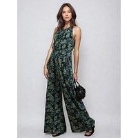 Religion Crew Halterneck Jumpsuit In Green Floral - Green The Crew halter neck jumpsuit is the ultimate all-in-one statement piece here in our best-selling Prime Green Floral print. This style features a flattering halter neck with a fitted waist. Wide leg, fully lined in soft viscose Side seam pockets. Digital print The model wears a size 10 Length: 145cm Material Content: Shell: 100% Polyester, Lining: 100% Viscose Washing Instructions: Machine Washable