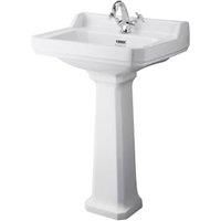 Bring early Edwardian elegance into your bathroom with this beautifully crafted traditional basin. Featuring a soft angular bowl and comfort height full pedestal it captures the timeless charm of period design while offering modern-day functionality. Made from high-quality vitreous china this basin ensures lasting durability and a smooth glossy finish thats easy to maintain perfect for adding a touch of heritage style to your space.