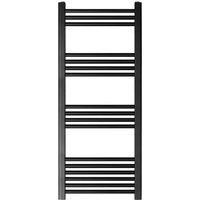 This straight heated towel rail blends practicality with modern style. Its slim, vertical profile maximizes wall space while offering dependable warmth for everyday use. Ideal for drying towels efficiently, it also helps maintain a comfortable bathroom temperature all year round. | Balterley Straight Heated Towel Rail Radiator, 644W, 500 x 1100mm, Matt Black