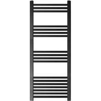 This straight heated towel rail blends practicality with modern style. Its slim, vertical profile maximizes wall space while offering dependable warmth for everyday use. Ideal for drying towels efficiently, it also helps maintain a comfortable bathroom temperature all year round. | Balterley Straight Heated Towel Rail Radiator, 376W, 500 x 1200mm, Anthracite in Grey