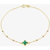 A 9ct yellow gold ball bracelet featuring a stunning malachite clover charm. The rich green tones of the malachite beautifully complement the gold, creating an elegant and stylish accessory perfect for any occasion. Adjustable Length: (7 - 7.5 inch) 18cm 19cm Clover Size: 7.5mm Item Code: 1.29.2242 | T.H.Baker Women's 9ct Yellow Gold Malachite Clover Ball Bracelet 1.29.2242 | Size: Adjustable
