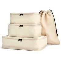 Rock Packing Cubes Set of 4 in Beige – Lightweight Travel Organisers for Luggage & Suitcases, Clothes Storage Bags with Laundry Bag & Grab Handles - Ideal for Holiday & Business Trips