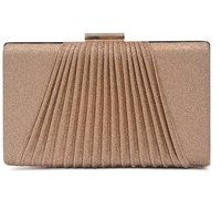 This stylish clutch features a sleek glitter finish with a pleated front design, adding a touch of sophistication to any look. Designed with a secure clasp closure and a detachable chain strap, it offers both function and elegance. The compact size of 17.5 x 11.5 x 5 cm is perfect for carrying essentials like your phone, cards, and lipstick. Whether hand-held or worn over the shoulder, this clutch is a chic addition to any wardrobe. | Kitise Women's Center Pletead Hard Case Shiny Glitter Clutch Evening Bag in Rose Gold - Manufacturers part number: Kitise_5056820711645
