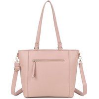 This elegant women's tote bag measures 37cm in length, 12cm in width, and 28cm in height, offering ample space for everyday essentials. Crafted from premium PU leather, it features a secure zippered main compartment, an external zipper pocket for quick access items, and both double handles and a detachable adjustable shoulder strap for versatile carrying options. With its sleek design and practical size, its perfect for work, travel, or daily errands. | Kitise Women's Large Handle PU Leather Tote Shoulder Bag With Strap in Pink - Manufacturers part number: Kitise_5056820718156