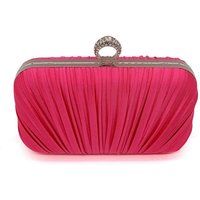Add timeless elegance to your evening ensemble with this beautifully pleated clutch bag. Designed for formal events, weddings, or nights out, it features a luxurious textured exterior and a secure ring handle adorned with sparkling accents. Compact yet spacious enough for essentials like your phone, cards, and makeup. Comes with an optional chain strap for versatile styling. Size: 15 x 5 x 19.5 cm perfect for effortless sophistication on the go. | Kitise Women's Ringstone Clasp Elegant Satin Pleated Evening Clutch Bag in Fuchsia - Manufacturers part number: Kitise_5056820718330