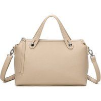 This elegant structured handbag is designed for versatility and everyday use, measuring H21cm x W31cm x D11cm. It features a sleek silhouette with soft PU leather texture, silver-tone accents, and dual top handles for handheld use. The detachable shoulder strap allows for crossbody or over-the-shoulder wear, offering style and function in one chic design. Ideal for work, errands, or casual occasions, it combines compact size with practical storage. | Kitise Women's Roomy Satchel Bag Work Casual Shoulder Bag in Beige - Manufacturers part number: Kitise_5056820718781