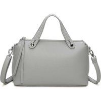 This elegant structured handbag is designed for versatility and everyday use, measuring H21cm x W31cm x D11cm. It features a sleek silhouette with soft PU leather texture, silver-tone accents, and dual top handles for handheld use. The detachable shoulder strap allows for crossbody or over-the-shoulder wear, offering style and function in one chic design. Ideal for work, errands, or casual occasions, it combines compact size with practical storage. | Kitise Women's Roomy Satchel Bag Work Casual Shoulder Bag in Grey - Manufacturers part number: Kitise_5056820718811