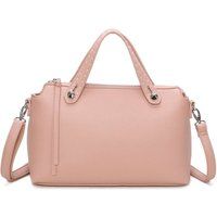 This elegant structured handbag is designed for versatility and everyday use, measuring H21cm x W31cm x D11cm. It features a sleek silhouette with soft PU leather texture, silver-tone accents, and dual top handles for handheld use. The detachable shoulder strap allows for crossbody or over-the-shoulder wear, offering style and function in one chic design. Ideal for work, errands, or casual occasions, it combines compact size with practical storage. | Kitise Women's Roomy Satchel Bag Work Casual Shoulder Bag in Pink - Manufacturers part number: Kitise_5056820718835