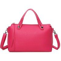 This elegant structured handbag is designed for versatility and everyday use, measuring H21cm x W31cm x D11cm. It features a sleek silhouette with soft PU leather texture, silver-tone accents, and dual top handles for handheld use. The detachable shoulder strap allows for crossbody or over-the-shoulder wear, offering style and function in one chic design. Ideal for work, errands, or casual occasions, it combines compact size with practical storage. | Kitise Women's Roomy Satchel Bag Work Casual Shoulder Bag in Rose - Manufacturers part number: Kitise_5056820718842