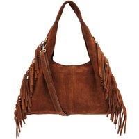Add a touch of boho chic to your outfit with this Italian genuine suede crossbody bag. Designed with soft texture and fringe detailing, it brings effortless charm and comfort. The roomy interior provides space for your essentials, while the secure closure keeps them protected. Perfect for travel, shopping, or daily wear, this lightweight and durable shoulder bag combines functionality with relaxed style for any casual look. | Kitise Women's Italian Genuine Suede Side Fringe Crossbody Small Shoulder Bag in Brown