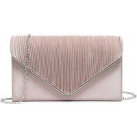 Satin Clutch Bag with pleated details on the front, V shape flap cover and Internal pocket for card storage, Magnetic snap button closure and Detachable chain shoulder strap . Size:21 X 5 X 12 cm. | JFY Women's Pleated Details Satin Clutch Bag in Beige - Manufacturers part number: JFY_5056821400005