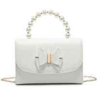 PU Clutch Bag with pearl top handle, tie on the flap with magnetic snap button closure, Internal slip pocket and detachable long metal chain. Size:19 X 5 X 13 cm; Handle Drop:8 cm. | JFY Women's Pearl Top Handle Tie Pu Clutch Bag in White - Manufacturers part number: JFY_5056821404782