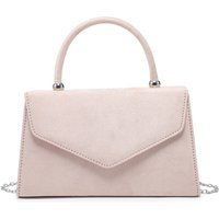 Suede Clutch Bag with top handle, magnetic button clasp, Internal slip pocket For Card Storage and detachable metal chain. Size:20 X 6 X 13 cm; Handle Drop:8 cm. | JFY Women's Top Handle Suede Clutch Bag in Beige - Manufacturers part number: JFY_5056821405222