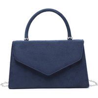 Suede Clutch Bag with top handle, magnetic button clasp, Internal slip pocket For Card Storage and detachable metal chain. Size:20 X 6 X 13 cm; Handle Drop:8 cm. | JFY Women's Top Handle Suede Clutch Bag in Navy - Manufacturers part number: JFY_5056821405277