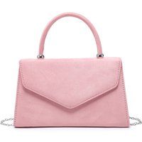Suede Clutch Bag with top handle, magnetic button clasp, Internal slip pocket For Card Storage and detachable metal chain. Size:20 X 6 X 13 cm; Handle Drop:8 cm. | JFY Women's Top Handle Suede Clutch Bag in Pink - Manufacturers part number: JFY_5056821405284